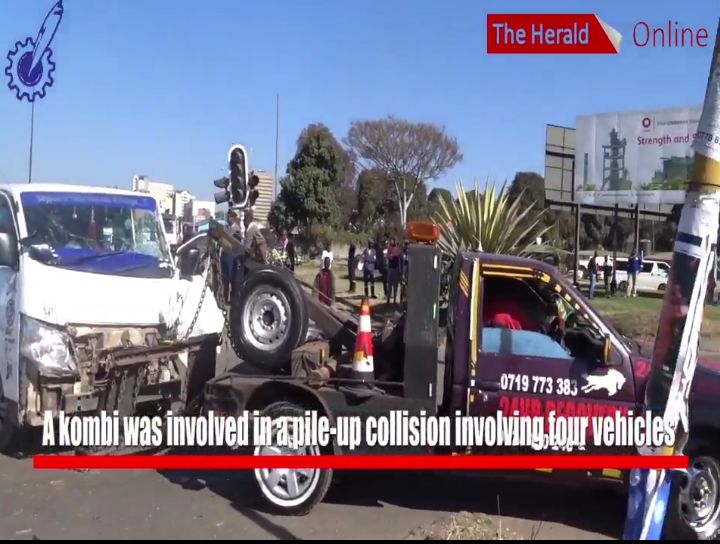 Seven people were injured after a kombi was involved in a pile-up collision involving four vehicles at the intersection of Robert Mugabe Road and ED Mnangagwa Road in Harare this morning.