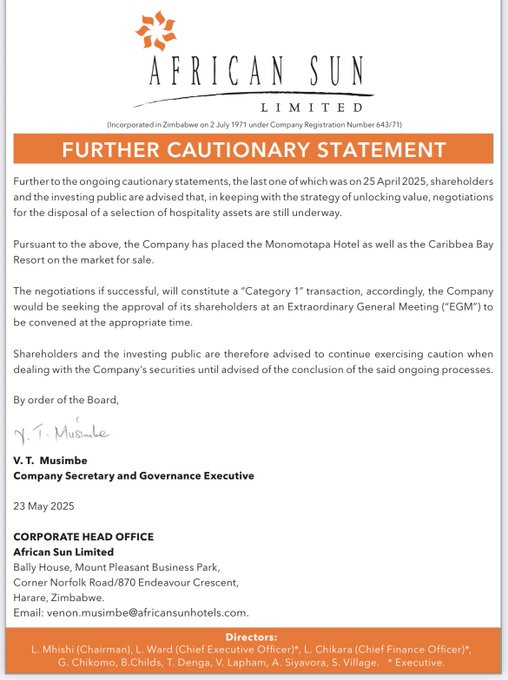 After disposing Great Zimbabwe Hotel for US$4.2 million and earmarking Monomotapa and Beitbridge hotels for sale, African Sun has announced it has also placed Caribbea Bay in Kariba on sale.