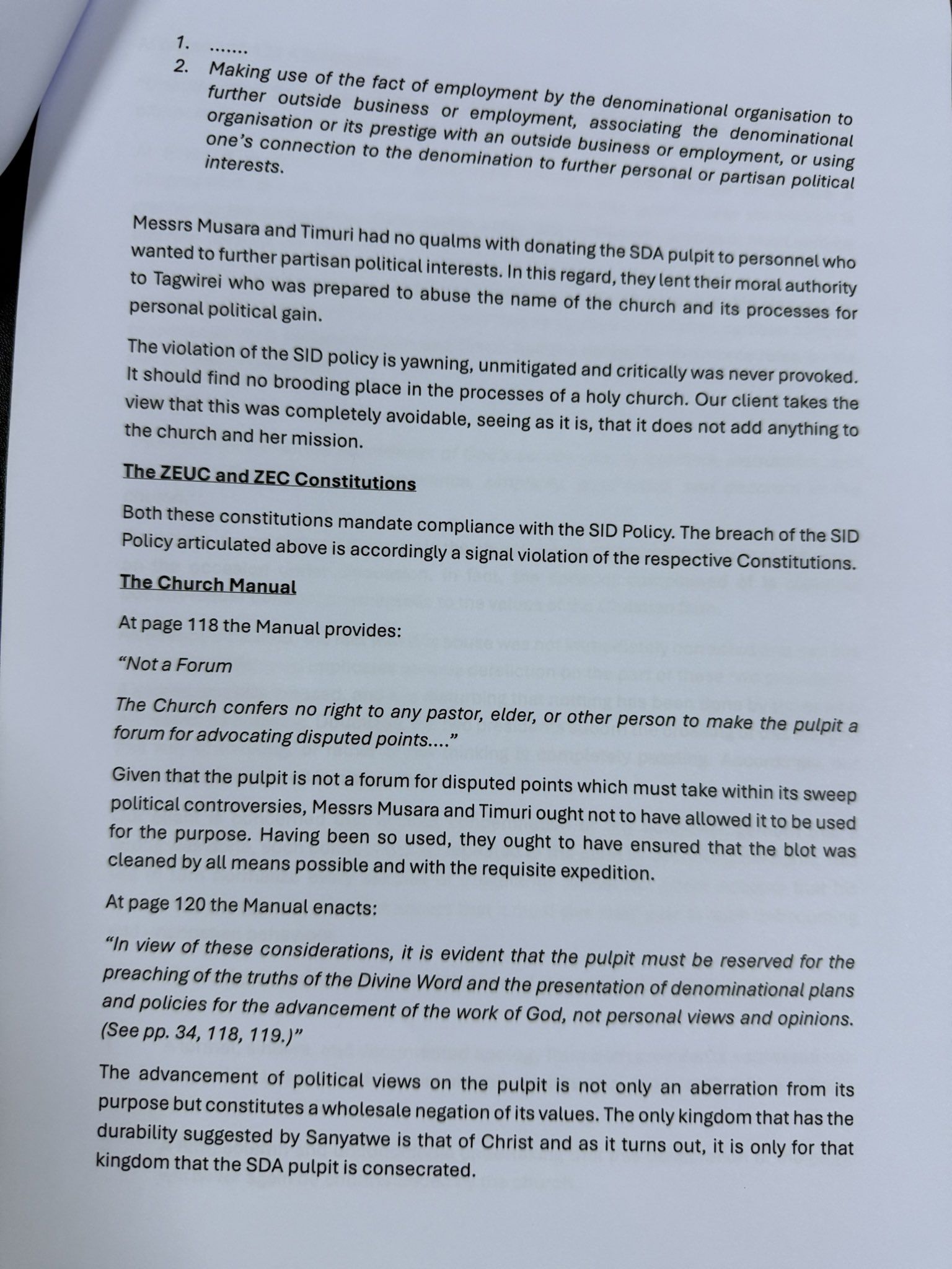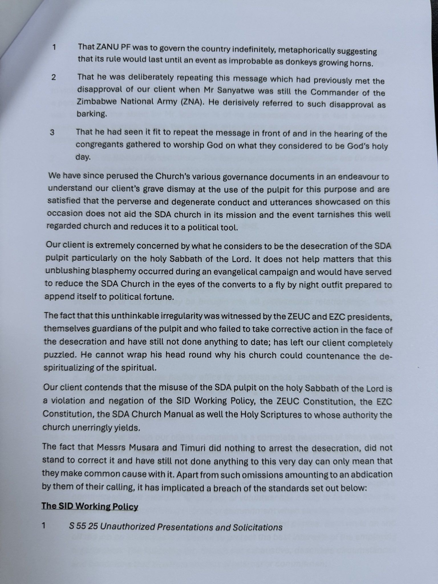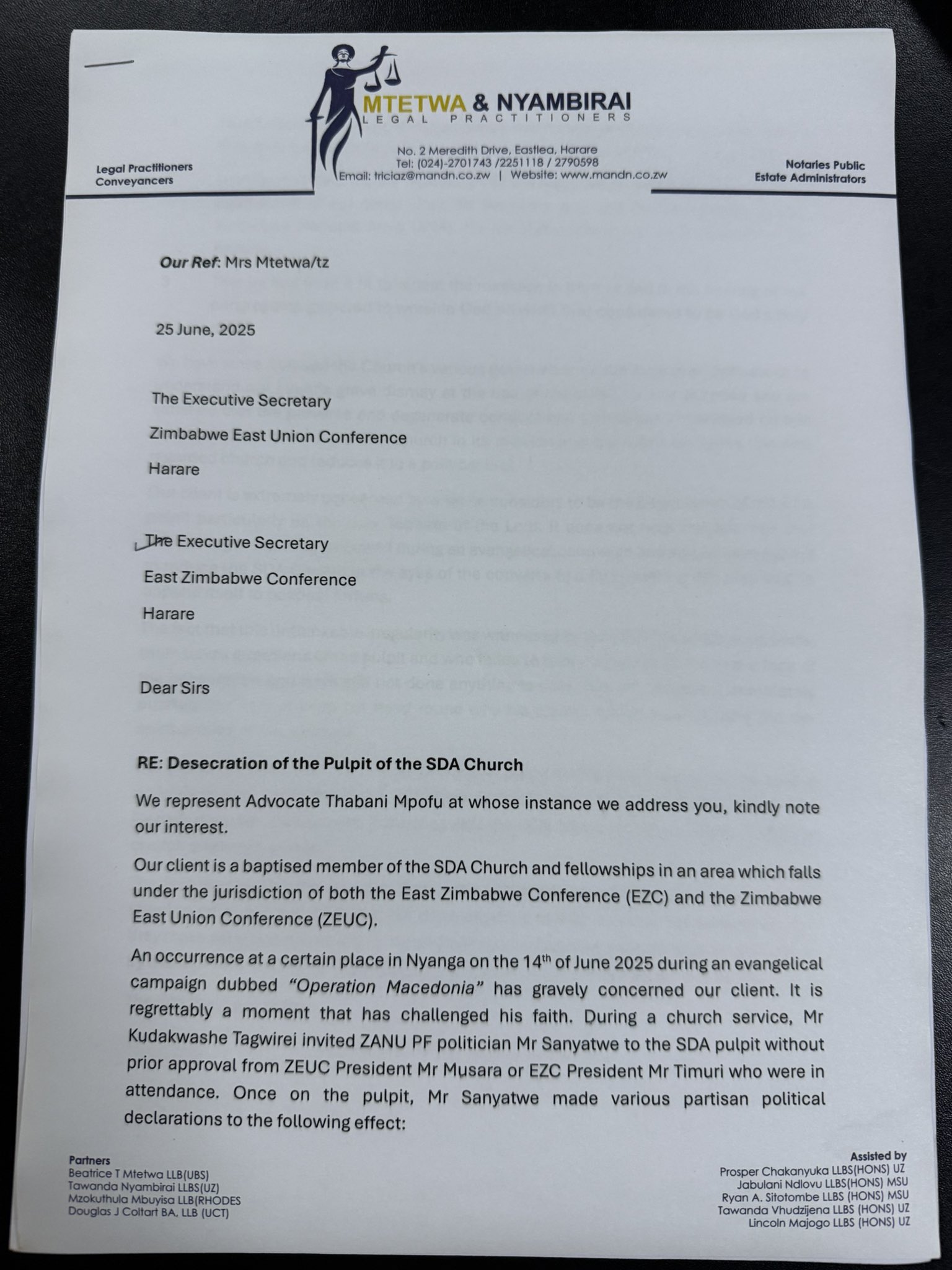 Top Zimbabwean lawyers Thabani Mpofu and Beatrice Mtetwa have petitioned the Seventh Day Adventist Church over what they call abuse of pulpit.