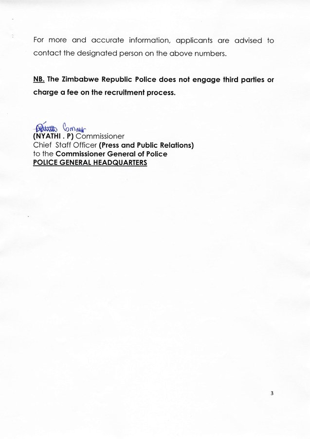 The Zimbabwe Republic Police ZRP is on a recruitment drive and suitably qualified individuals are invited to apply.