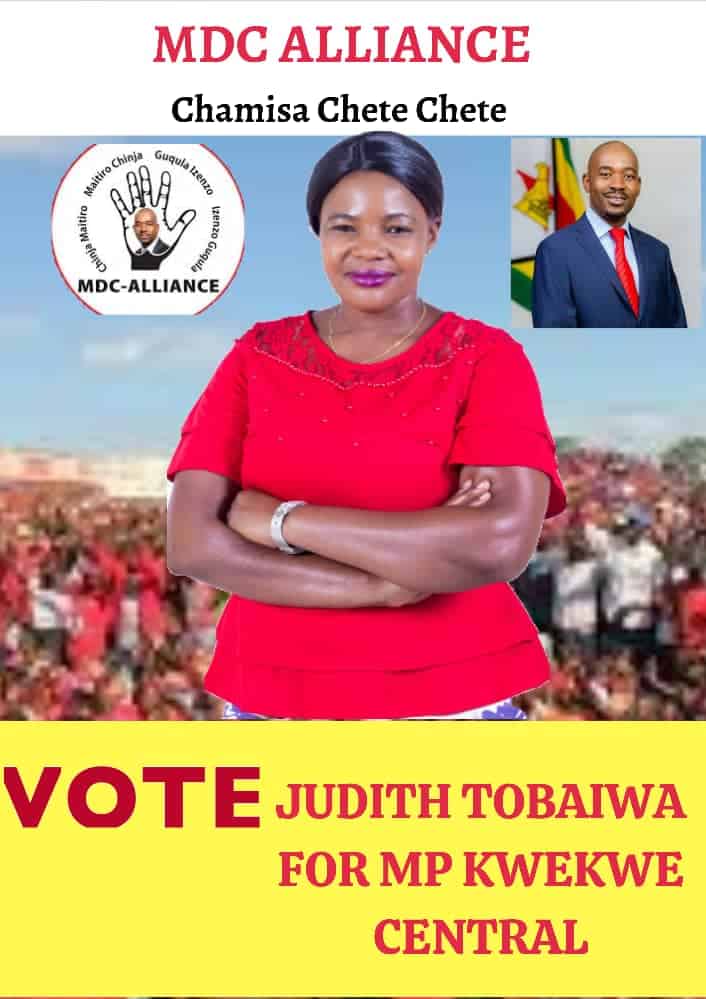 “I interrupt this conversation to introduce the Official MDC Alliance candidate for Kwekwe Central by-elections. Hon Judith Tobaiwa has just won the Party Primaries against heavyweights, including former MP Blessing Chebundo and former Health Minister Henry Madzorera,” Chikwinya wrote.