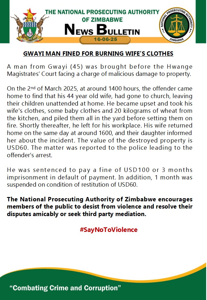 The National Prosecuting Authority of Zimbabwe (NPAZ) confirmed the development.