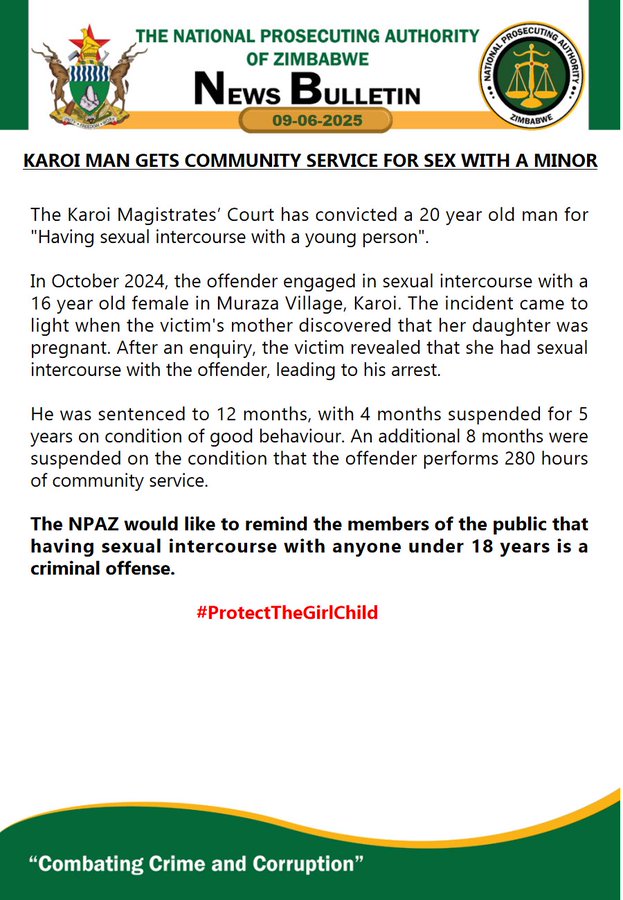 According to the National Prosecuting Authority of Zimbabwe the offence was committed in 2024.