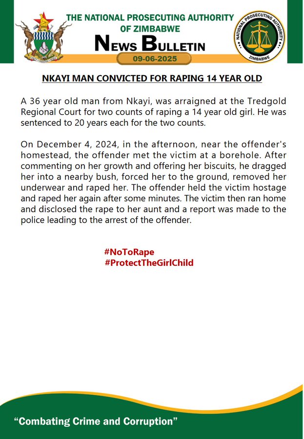 The National Prosecuting Authority of Zimbabwe confirmed the judgment in a news bulletin.