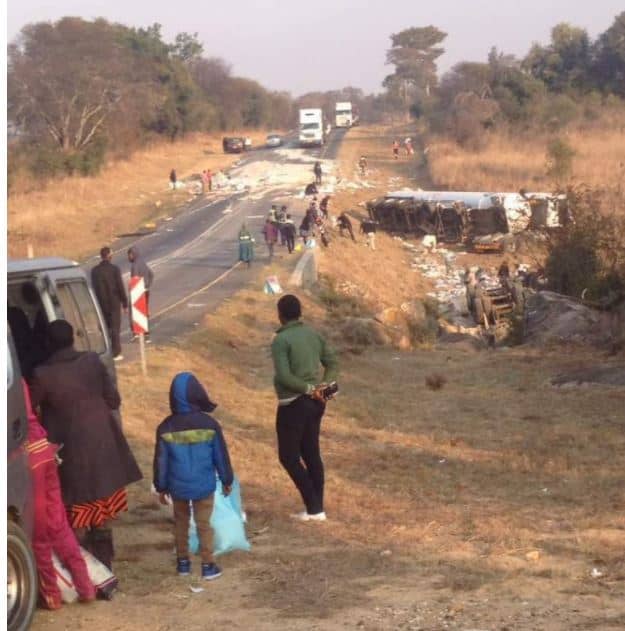 Here are pictures of Macheke residents who flocked to an accident scene and looted rice.