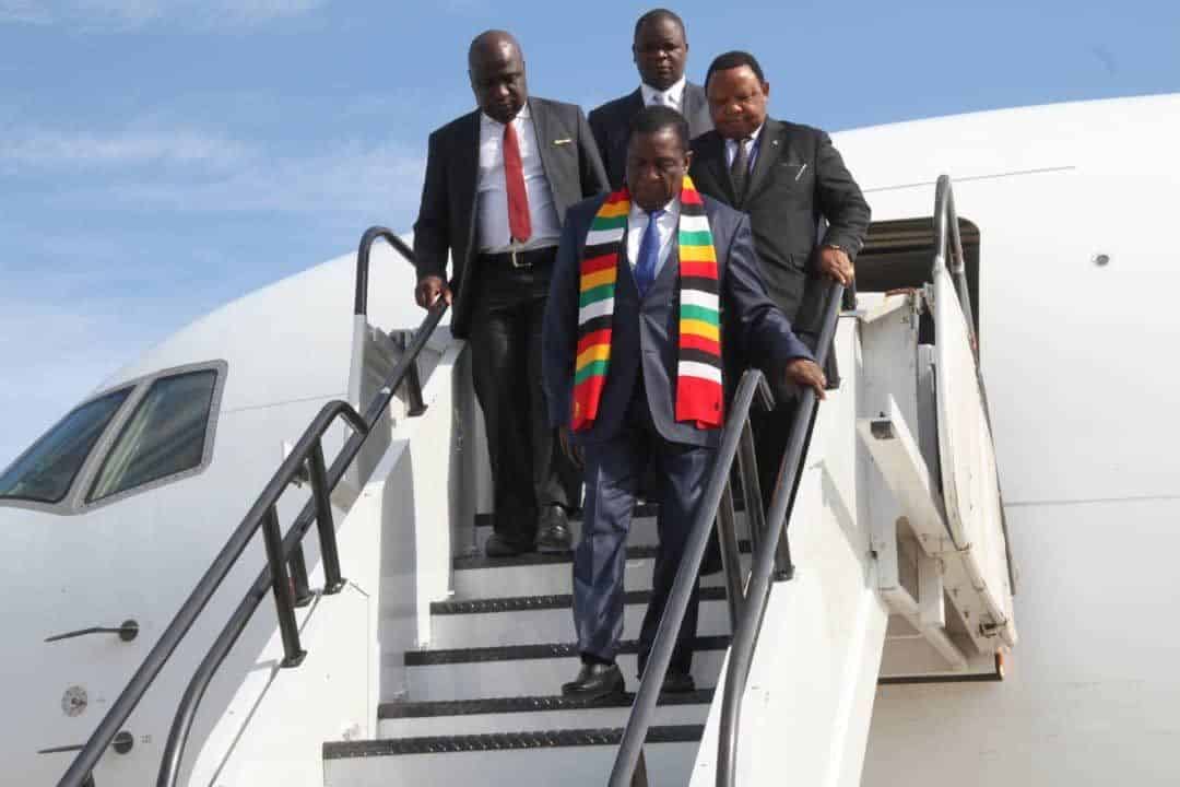 Mnangagwa was welcomed by Zimbabwean ambassador to Zambia Charity Charamba and senior Zambian officials.