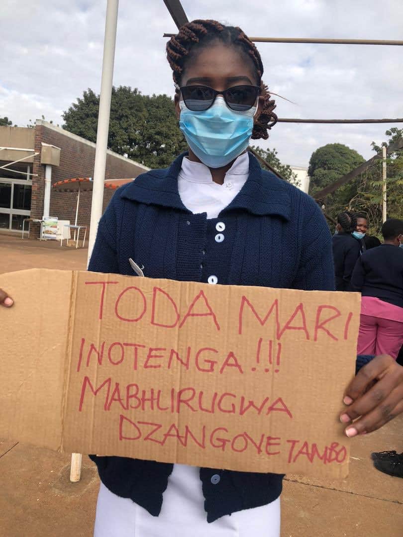 The Healthcare worker, demands that salaries revert back to the 1st of October digits that were pessed in USD Which is a stable currency that can store value of that salary. In that way, pensions, savings, medical aid, funeral policies will not continue to be eroded.